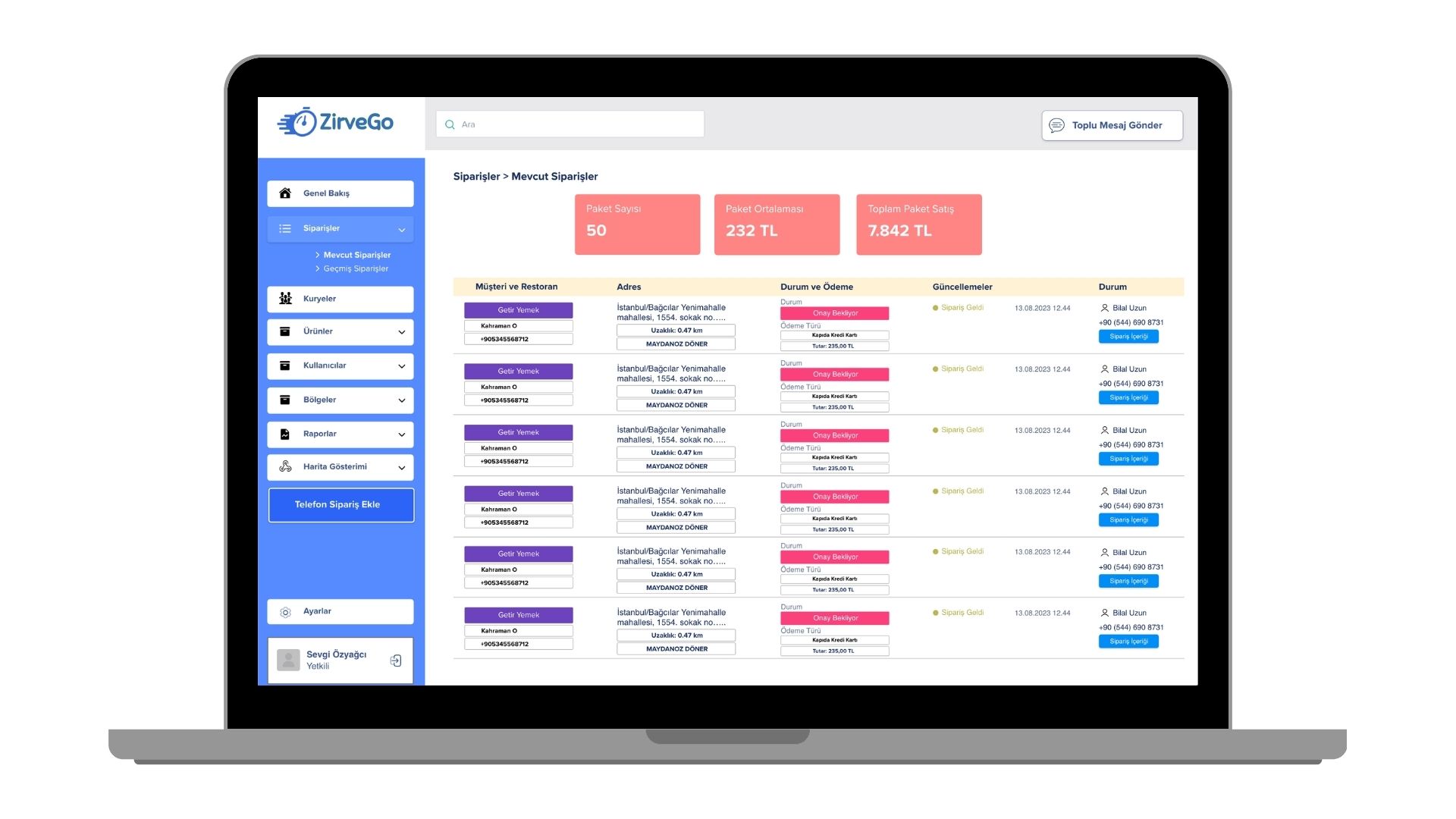 İşletmeler, siparişleri anlık olarak takip edebilir, kuryelere atama yapabilir, şubeler arası yönetim sağlayabilir ve tüm operasyonlarını merkezi bir yapı üzerinden kontrol edebilir.