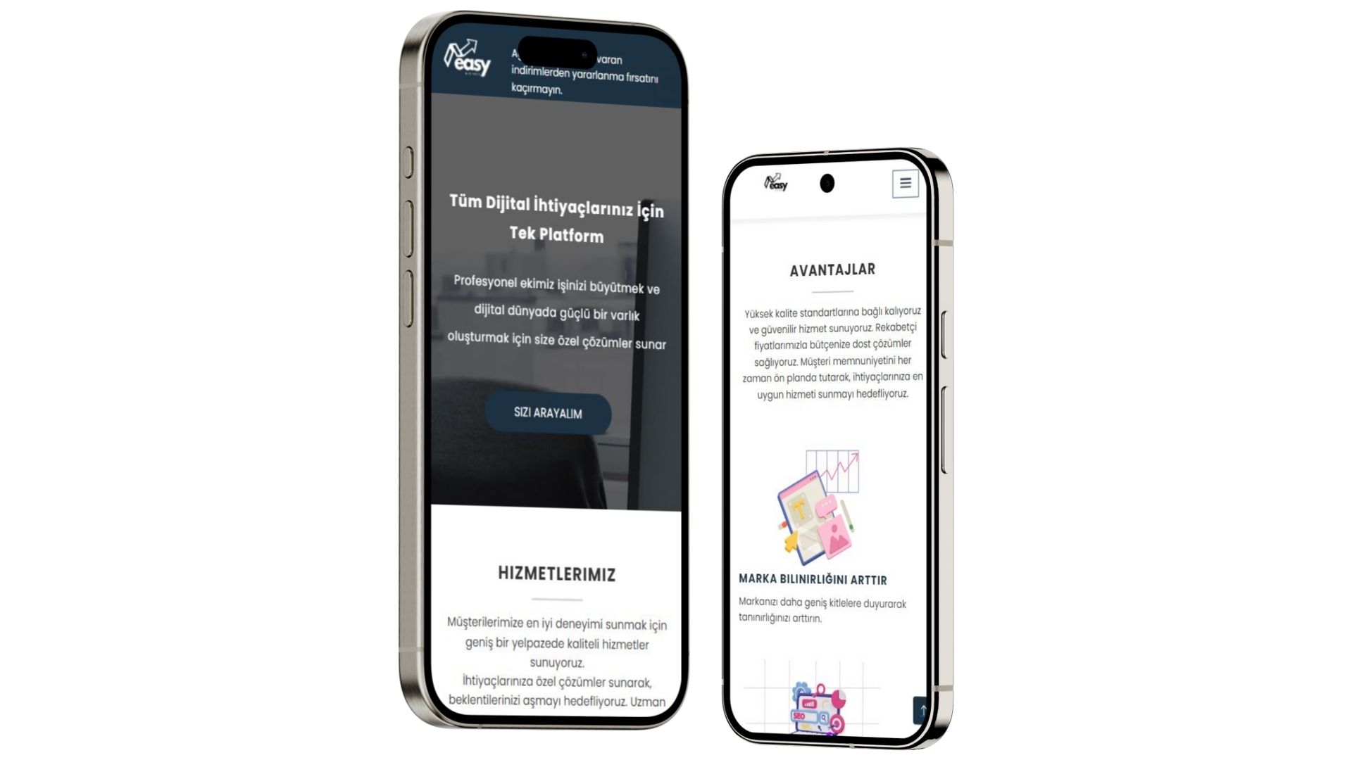 EasyBusiness için geliştirilen bu web sitesi, markanın dijital dünyadaki kurumsal kimliğini güçlendiren ve kullanıcı deneyimini ön planda tutan bir çözüm sunmaktadır.