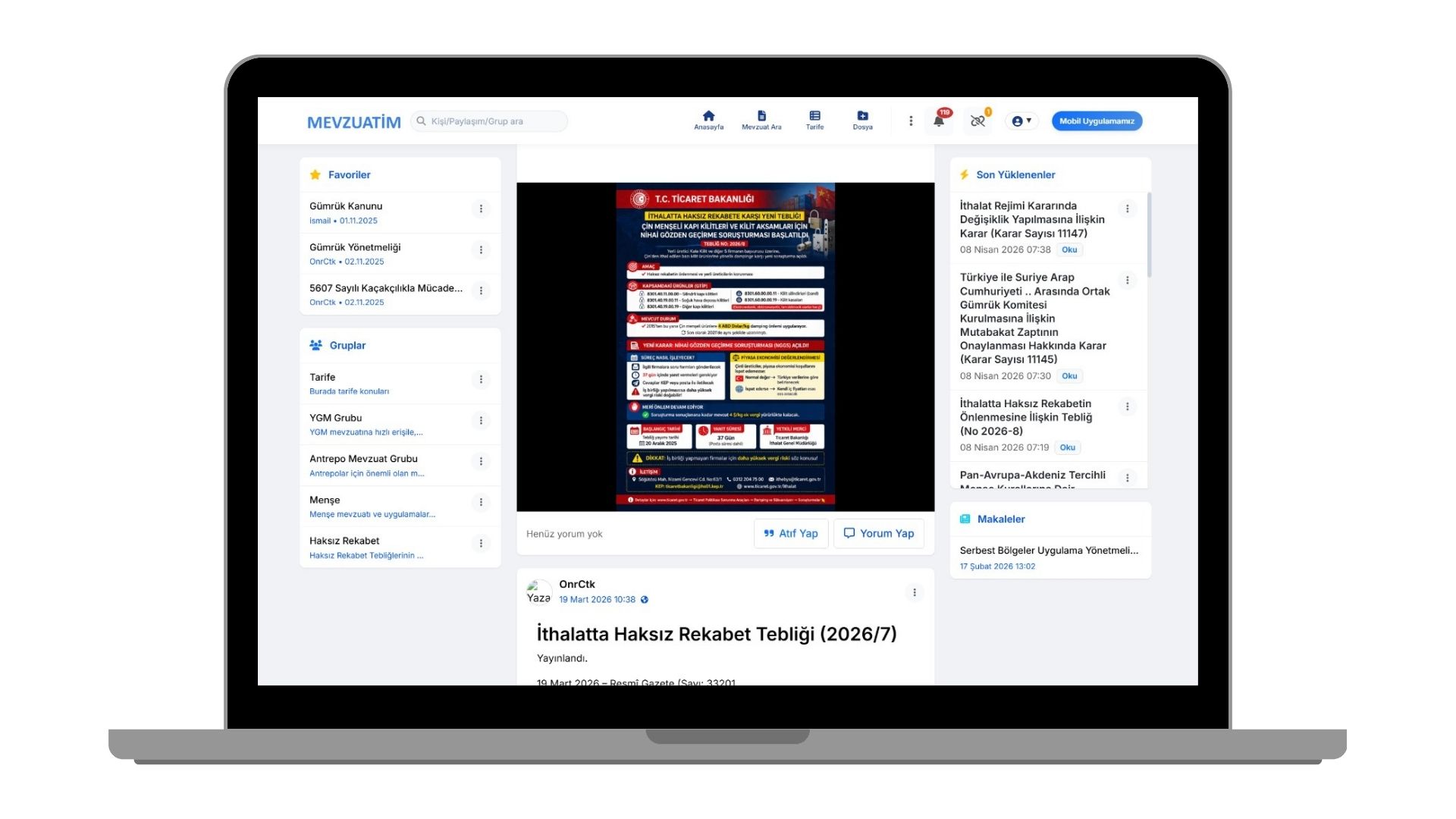Mevzuatım, işletmelerin ihtiyaç duyduğu hukuki dokümanlara hızlı, doğru ve güvenilir şekilde ulaşmasını sağlayan, aynı zamanda bu dokümanların oluşturulmasını ve yönetilmesini kolaylaştıran yapay zeka destekli bir platformdur. Günümüzde firmalar için KVKK, mesafeli satış sözleşmeleri ve diğer yasal metinler yalnızca bir zorunluluk değil, aynı zamanda güven ve sürdürülebilirlik açısından kritik bir unsurdur.