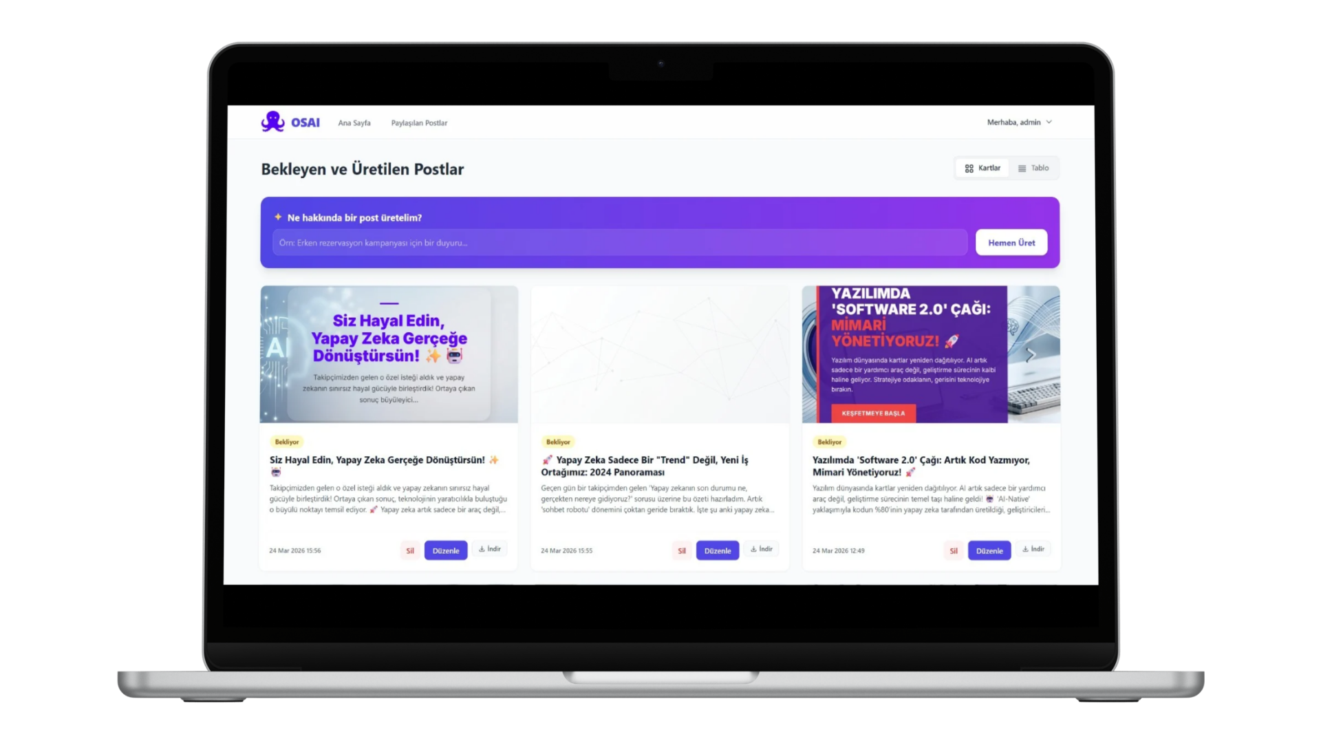 Platform, kullanıcıların yalnızca kısa bir konu veya fikir girmesiyle; görsel metinleri, başlıkları ve açıklamaları otomatik olarak oluşturarak yüksek kaliteli sosyal medya postları üretmesini sağlar.